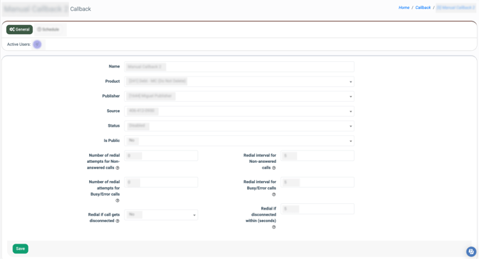 The “Schedule” tab allows you to change the Callback type (Manual to Auto) and set the schedule for the automated Callback (for the “Auto” type only).