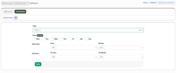 - Type: The type of the Callback (Manual, Auto). Select the “Auto” type to set a schedule for the automated callback.