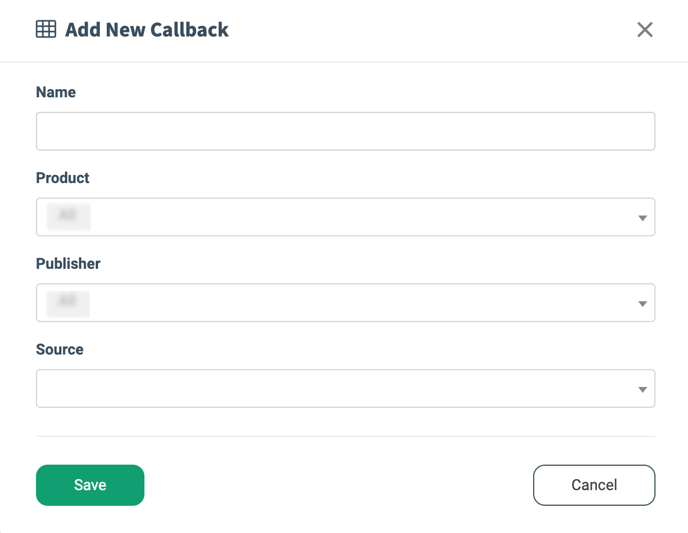 To create a new Callback, click the “Add New Callback” button and fill in the following fields in the pop-up window: