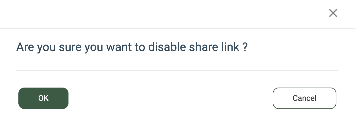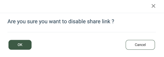 To disable the ongoing valid link, click the “Disable” button. Confirm the link is disabled by clicking the “OK” button in the following pop-up window.