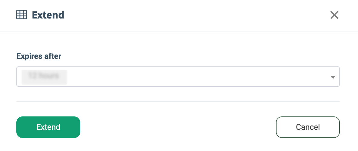 To extend the link's expiration period, click the “Extend” button. Select a new deadline for the link expiration in the “Expires after” field of the “Extend” pop-up window.
