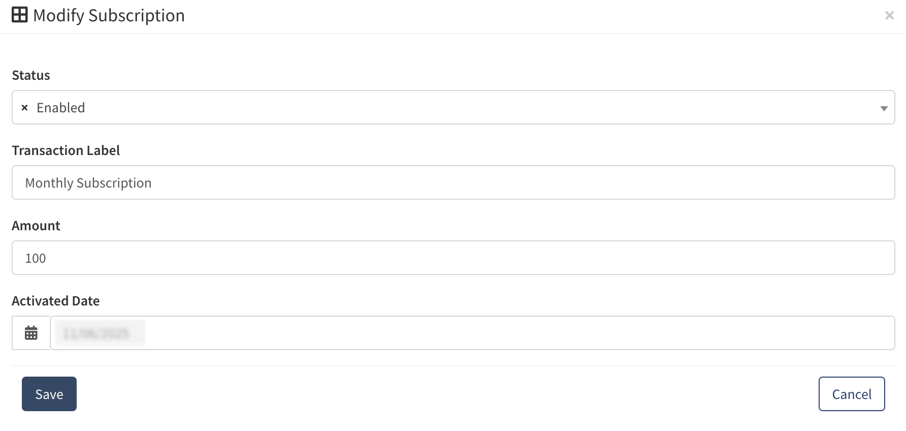 - Activated Date: Select the subscription start date.