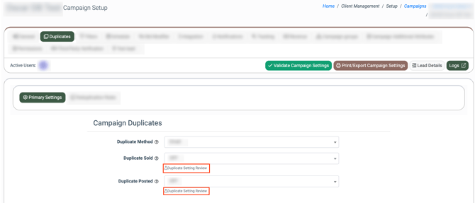 - Current Dup Posted: The number of days within which duplicated leads, previously posted to the campaign, are restricted from being reposted. (available on the “Group by Campaign” tab).