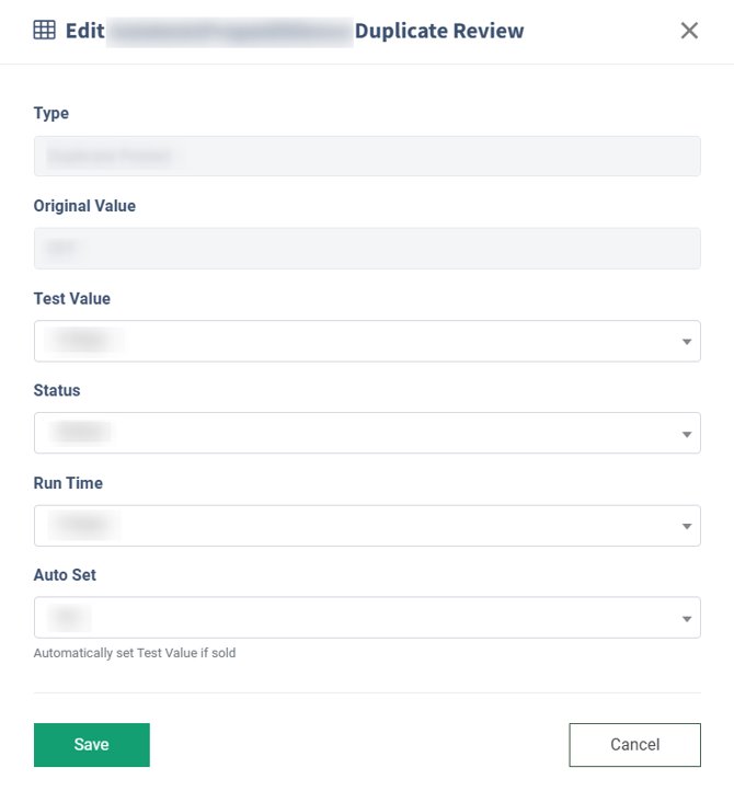 To configure an existing rule, click the “Edit” button in the “Actions” column and change the following settings in the “Edit Duplicate Review” pop-up window: