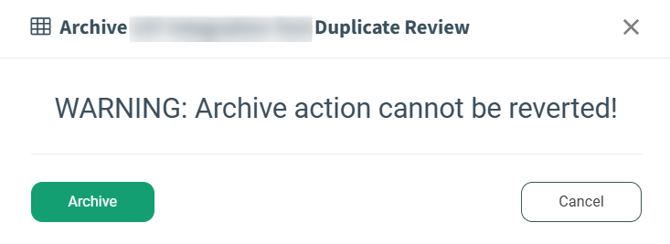 To send the rule to the archive, click the “Archive” button in the “Actions” column. Click the “Archive” button in the “Archive Duplicate Review” pop-up window to complete the action.