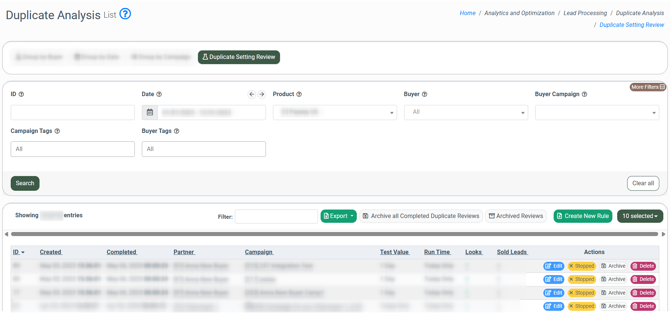 To send all already processed rules to the archive, click the “Archive all Completed Duplicate Reviews” button at the top of the main block.