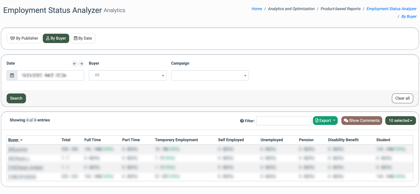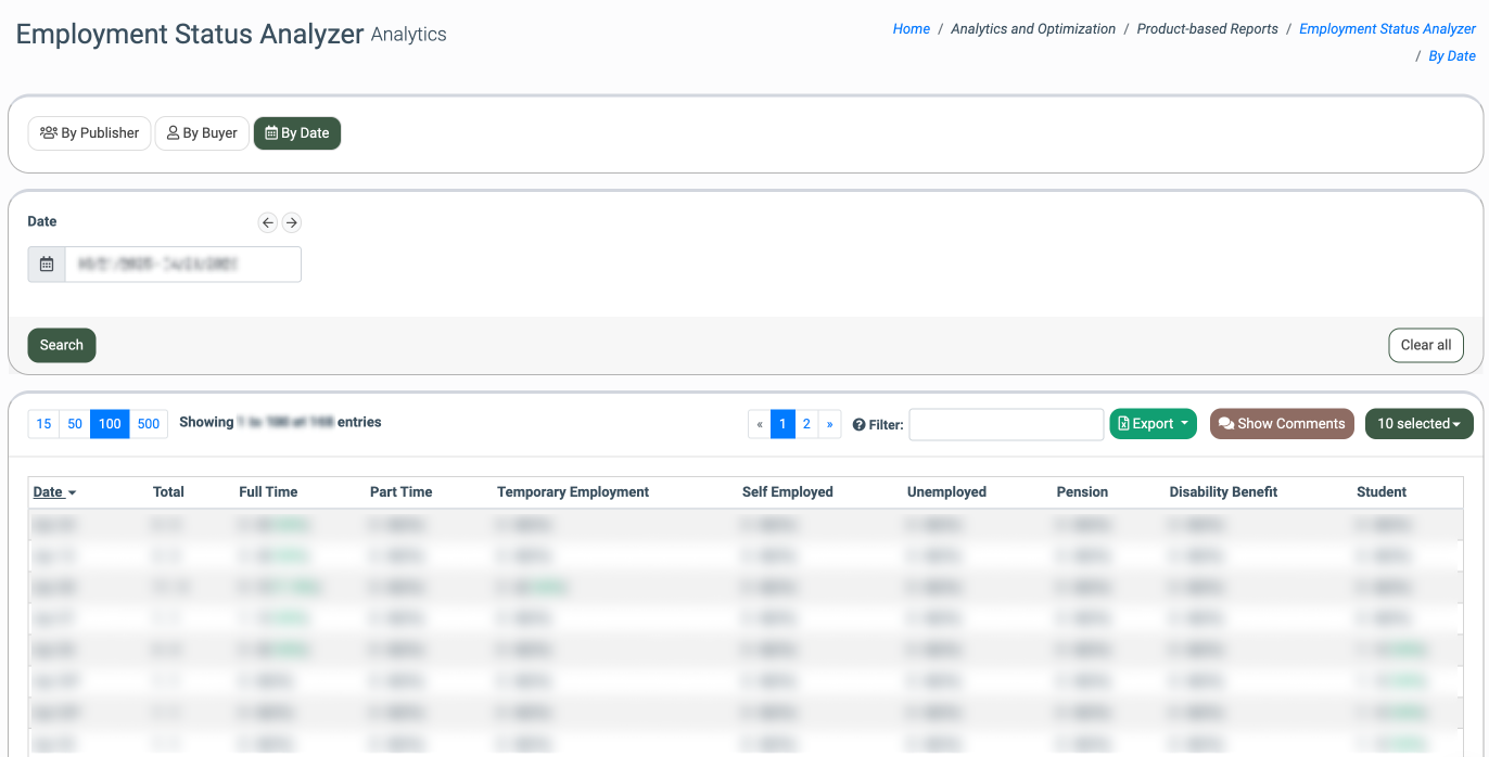 To open the “Employment Status Analyzer” go to the Analytics and Optimization > Product-based Reports > Employment Status Analyzer section.