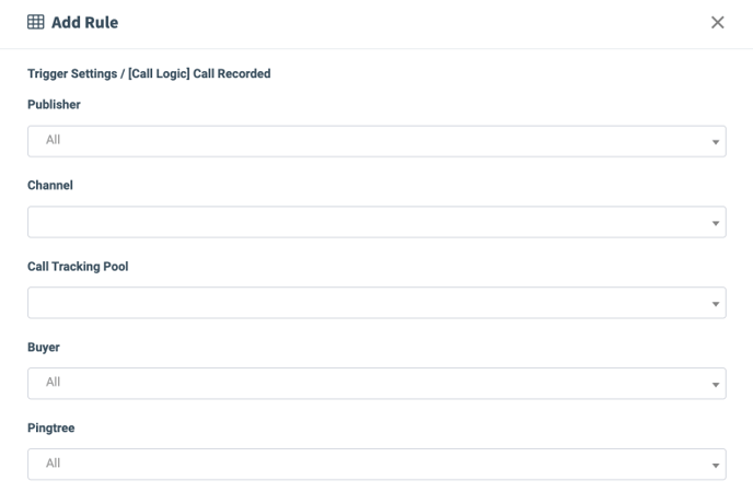 - Call Tracking Pool: Select the call tracking pool (available only for Call Logic triggers).