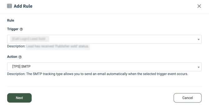 The SMTP tracking type allows you to send an email automatically when the selected trigger event takes place.