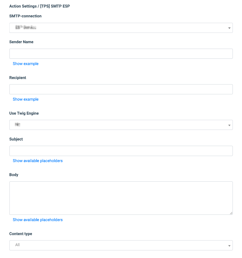 - Action: Select the “[TPS] SMTP” option.