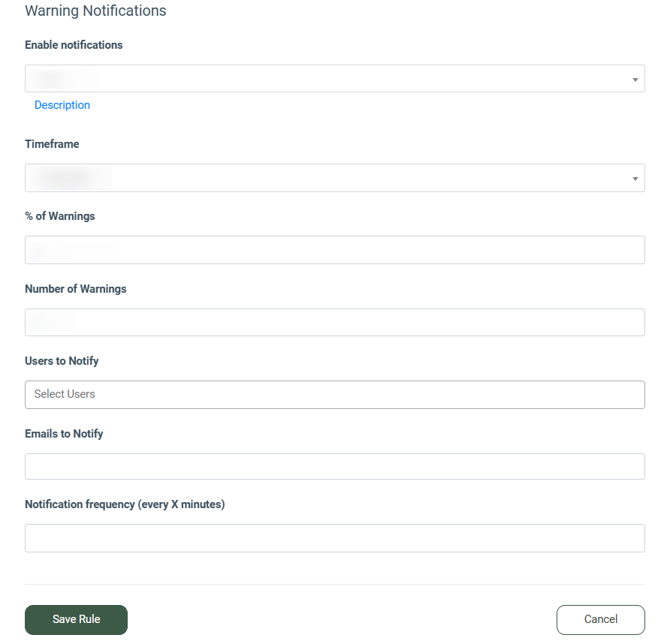 - Users to Notify: Select the users to whom the system will send the warning notification.