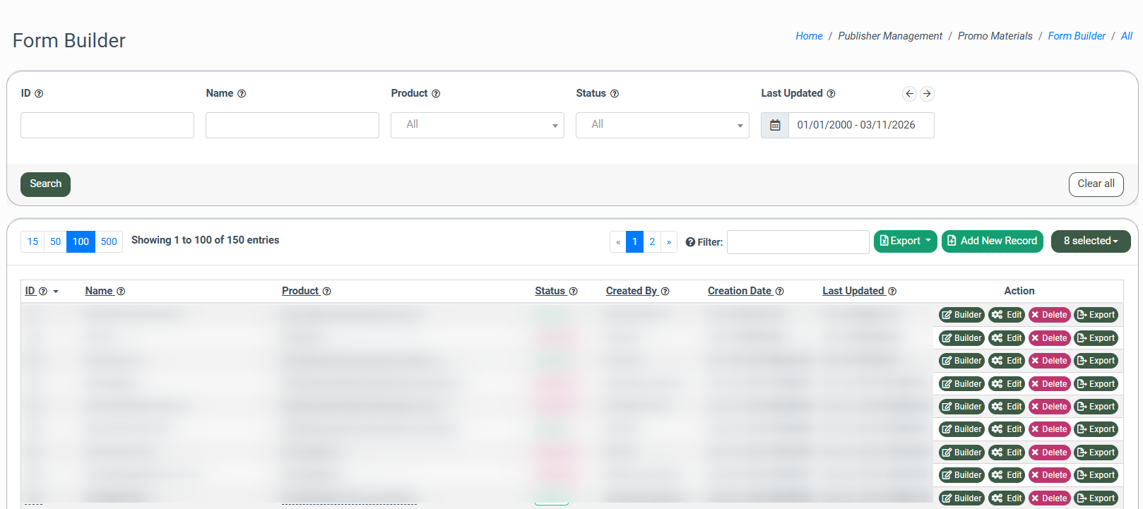 To view the section, go to the Publisher Management > Promo Materials > Form Builder section.