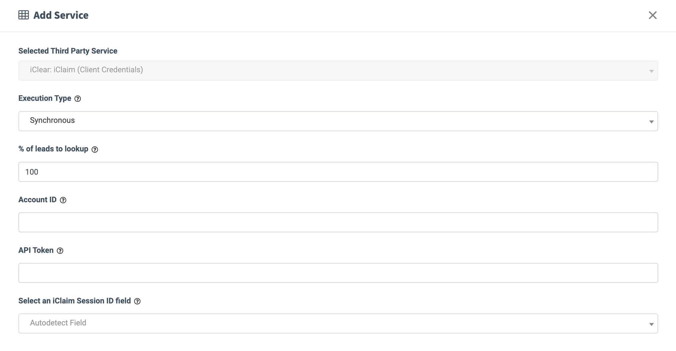 - % of leads lookup: Set the percentage of leads to be checked through this service. Note: This field is available only for Synchronous and Asynchronous Execution types.