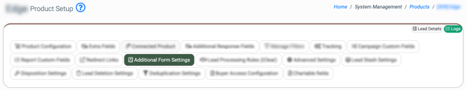 To receive the iClaim Session ID parameter data via your JS Forms, you can configure your Product by adding the iClaim’s service script into your forms. To do so, go to the System Management > Products section, select the preferred Product from the list, and click the “Settings” button. Then click the “Additional Form Settings” tab.
