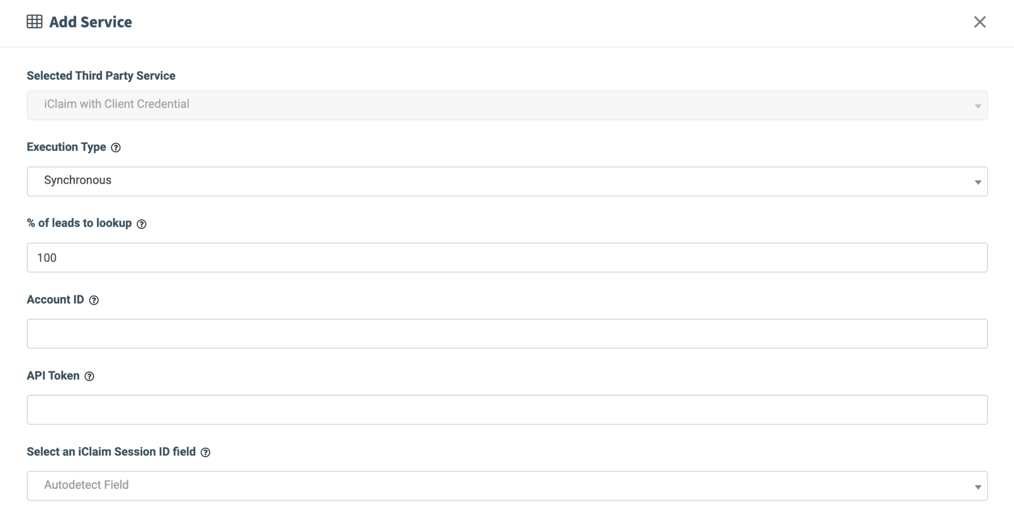 - % of leads lookup: Set the percentage of leads to be checked through this service. Note: This field is available only for Synchronous and Asynchronous Execution types.