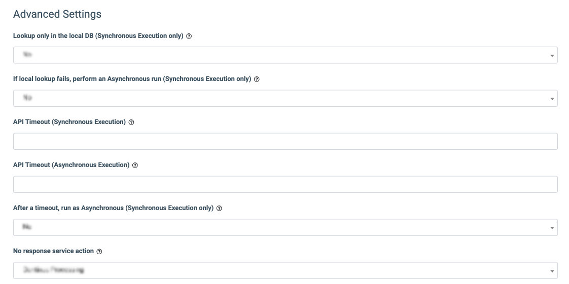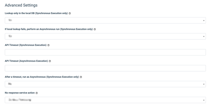 The “Advanced Settings” configuration block allows you to customize the lookup and timeout settings of the service according to the selected Execution Type.