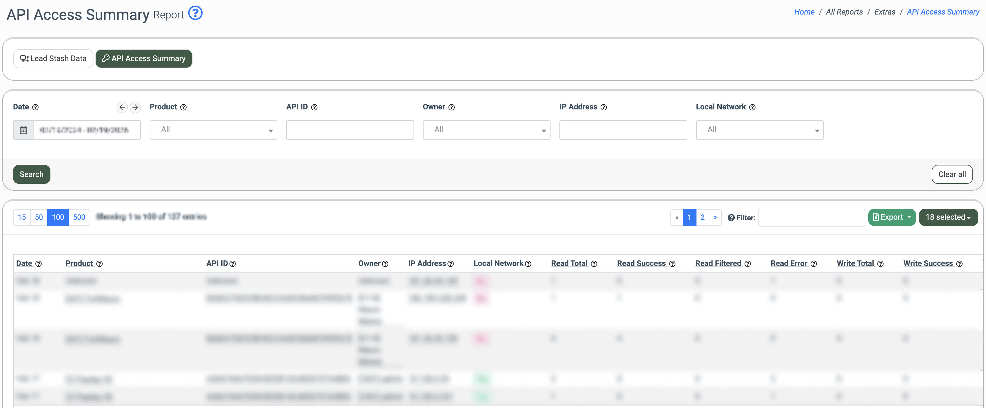 The API Access Summary Report provides centralized visibility into how the Lead Stash API is being accessed across products, API keys, and environments. This report helps you understand when, where, and how their API keys are used, making it easier to maintain operational oversight and strengthen data security.