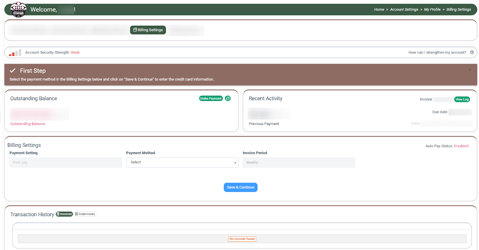 The “Billing Settings” tab allows you to select and configure payment methods. Also, it allows you to set up the Auto Recharge payment option.