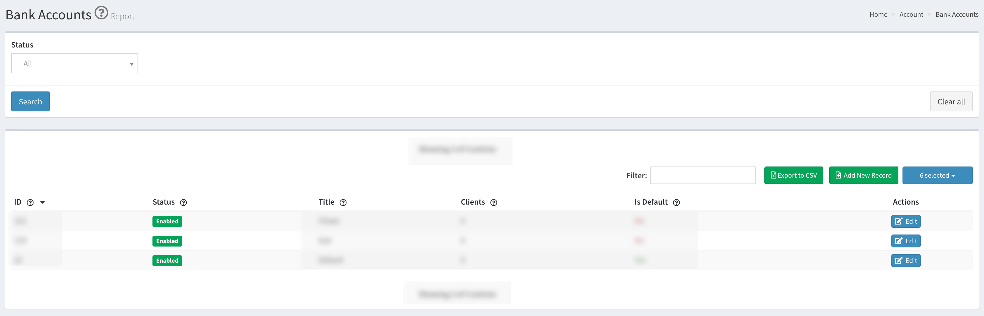 - Status: The status of the bank account (Enabled / Disabled).