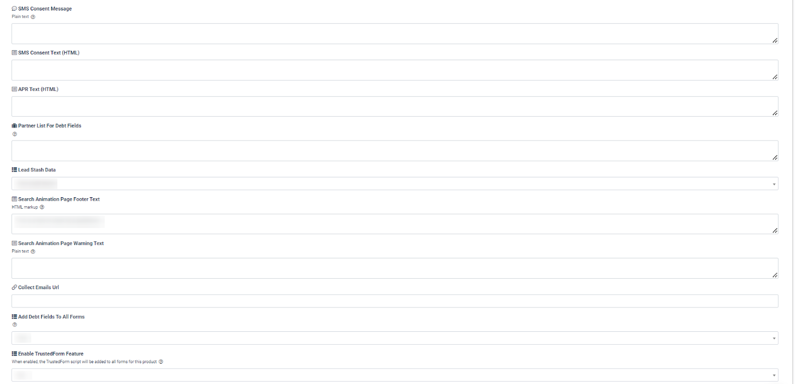• Add Debt Fields To All Forms: Select the “Yes” option to display additional fields in all JS Forms for this Product.