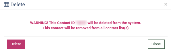 Click the “Delete” button in the “Actions” column to delete the contact. Click the “Delete” button to confirm.
