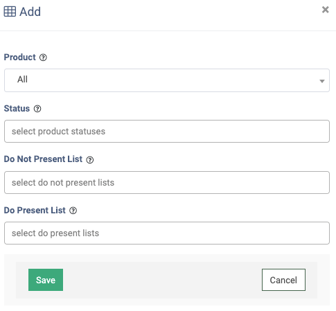 To add a new Present & Do Not Present List configuration for the Buyer, click the “Add” button and fill in the following fields: