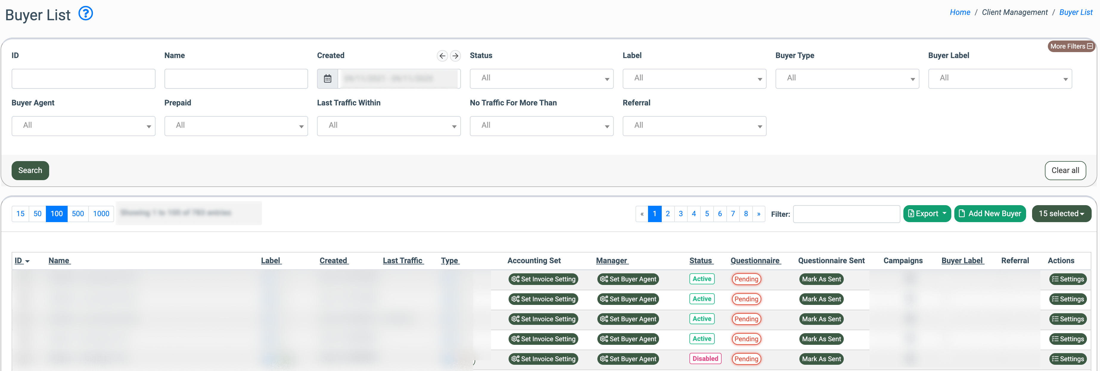 To view the list, go to the Client Management > Buyer List.
