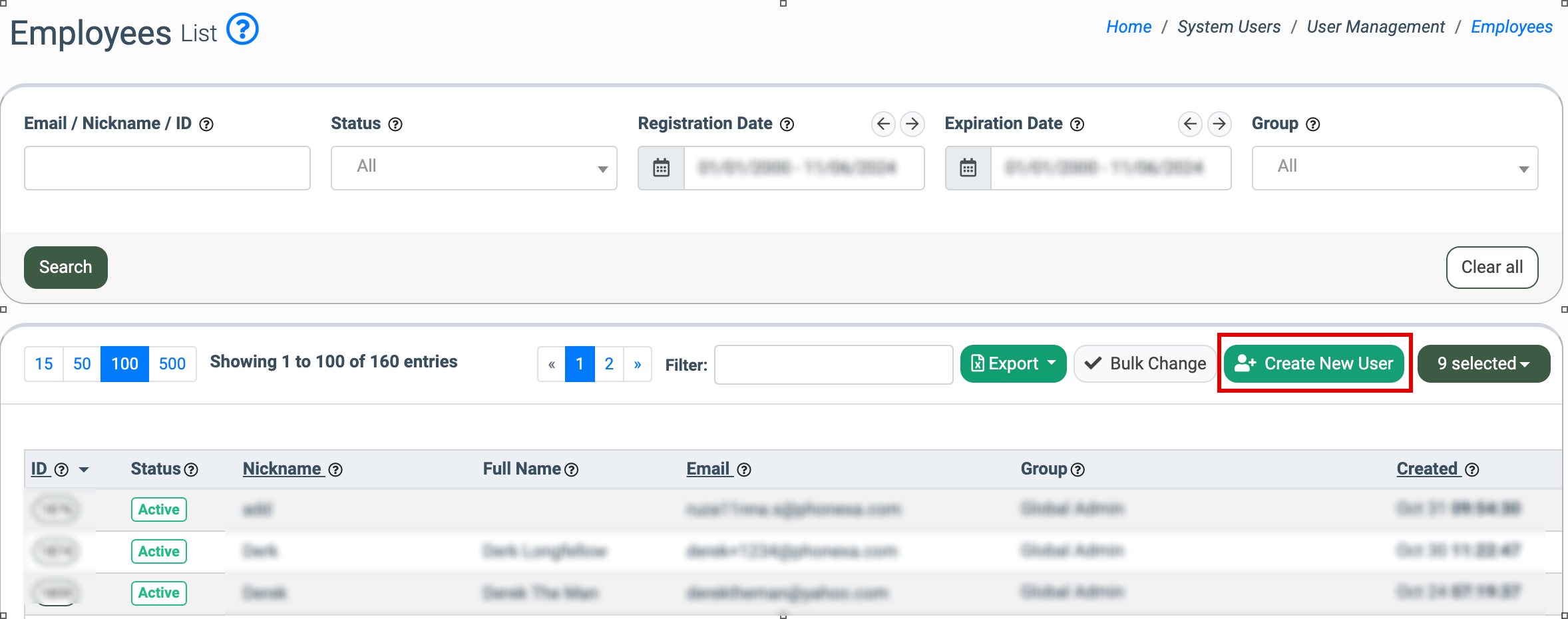 To create a new user, go to the System Users > Employees section and click the “Create New User” button.