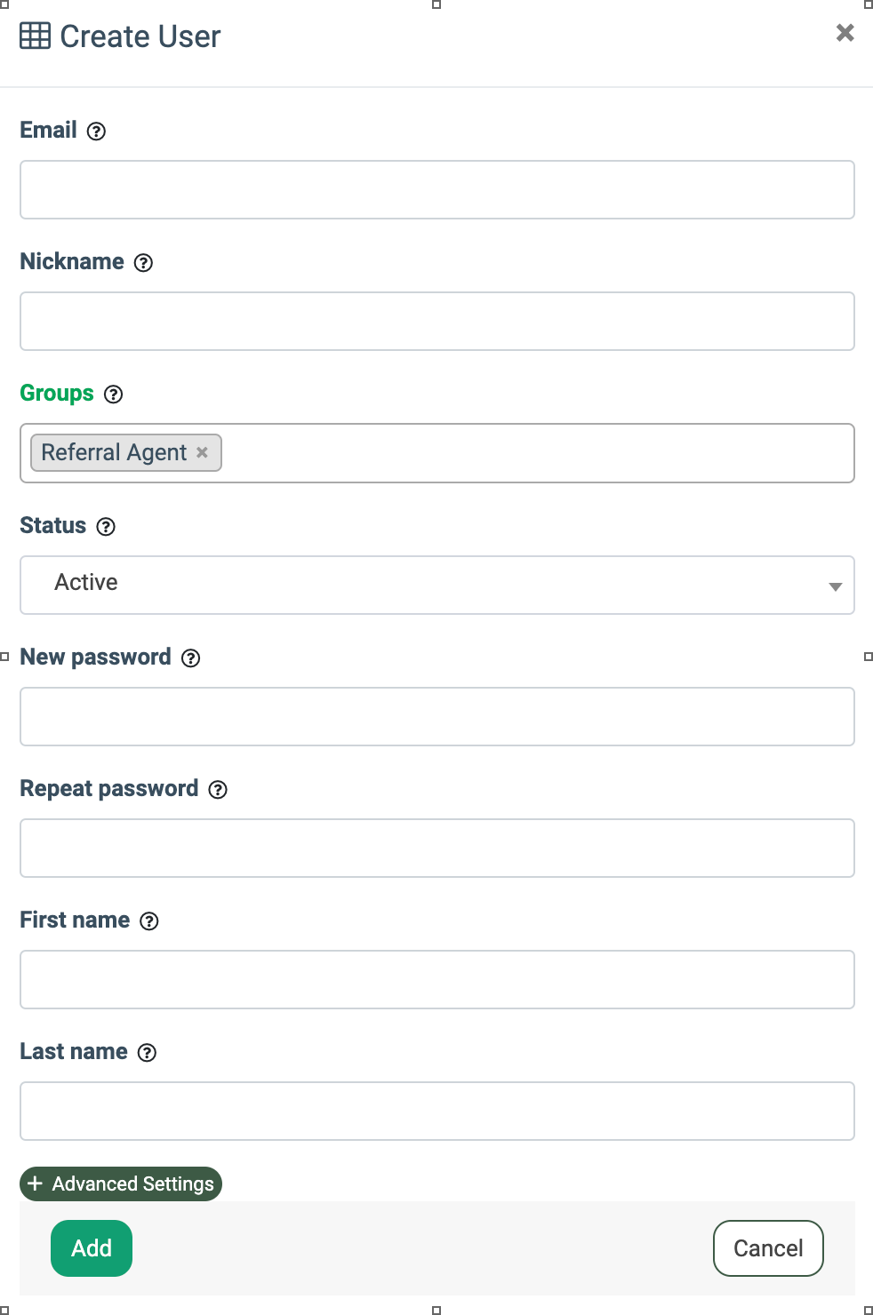• Groups: Select the “Referral Agent” group.