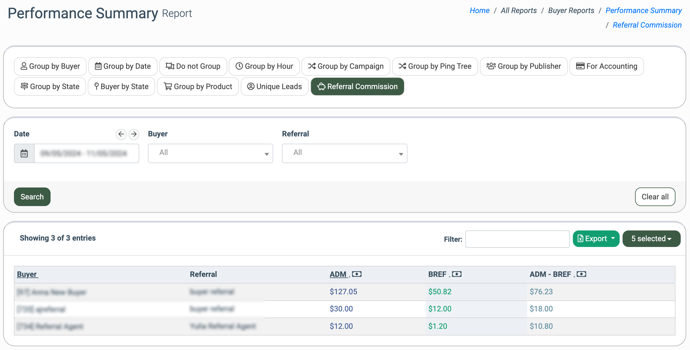 To access, go to the All Reports > Buyer Reports > Performance Summary section and select the “Referral Commission” tab.