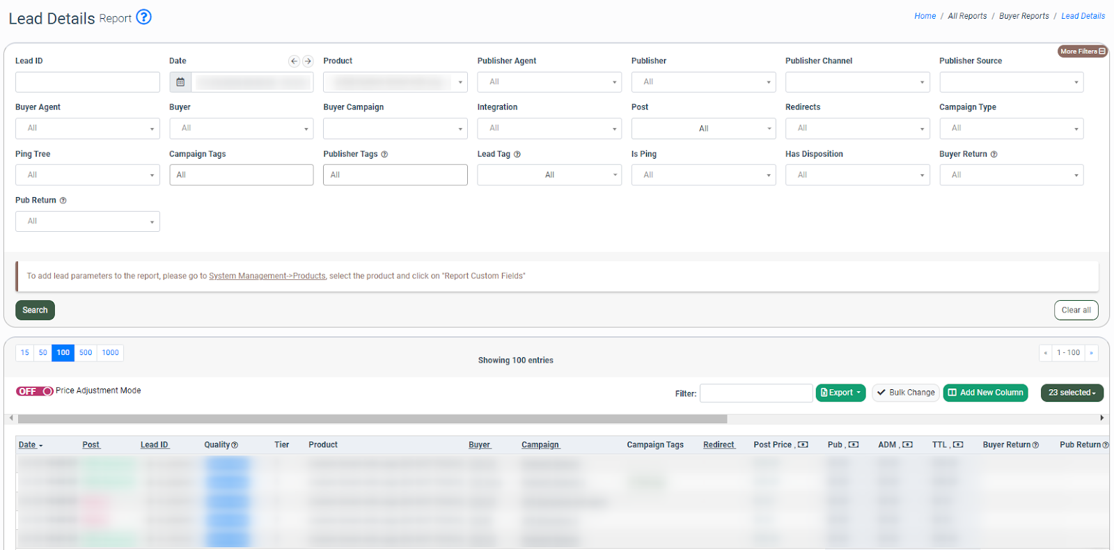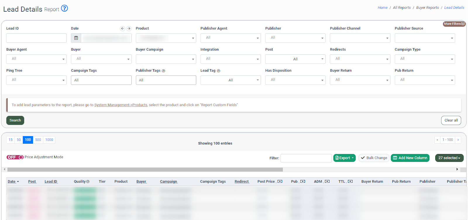 The Lead Details report allows you to view detailed information about all leads in your system such as Lead ID, post status, quality, post price, state, IP, etc.