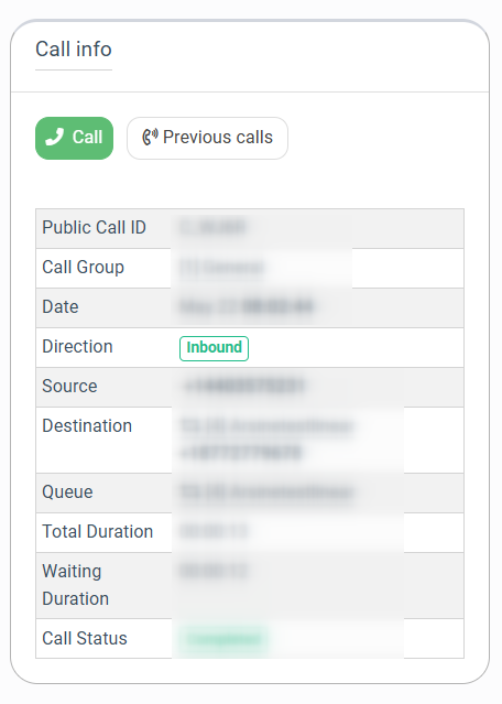 - Public Call ID: The public unique identification number of the call.