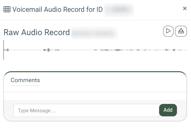 - Comments: Enter the related comment to the voicemail. To save the comment, click the “Add” button.