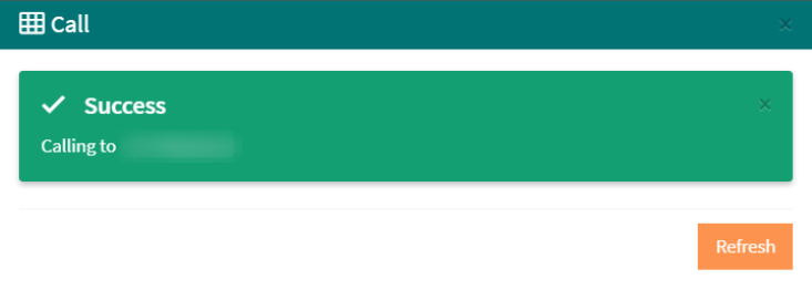 To perform the call to the particular phone number, click the “Call” button in the “Action” column. The call information will be displayed in the “Call” pop-up window.