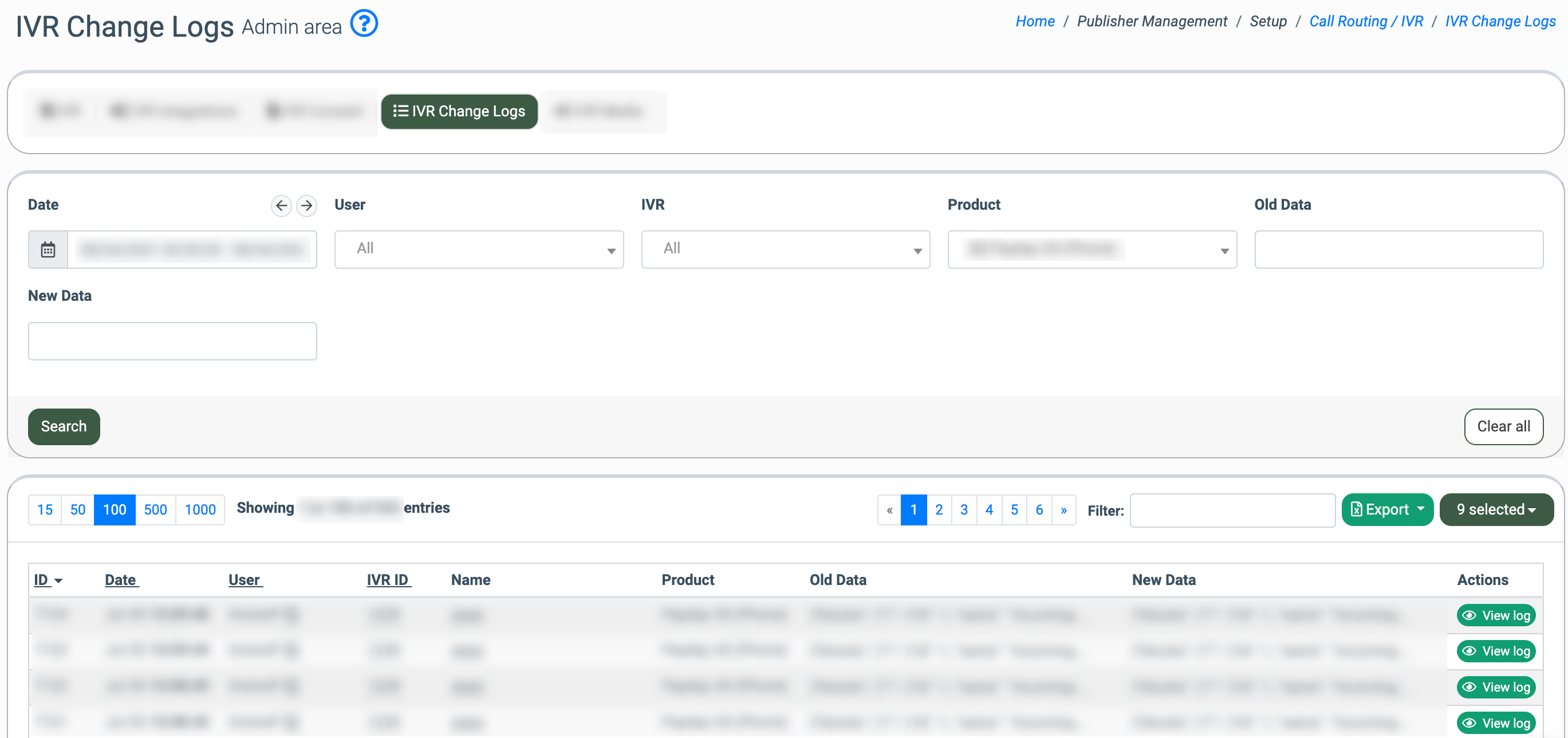 The “IVR Change Logs” tab allows you to view a report of the changes made to the IVR Flows.