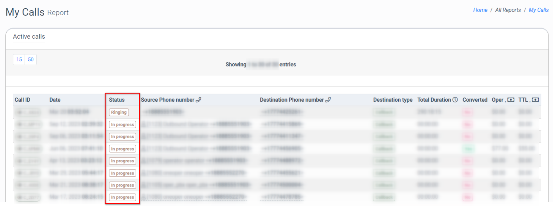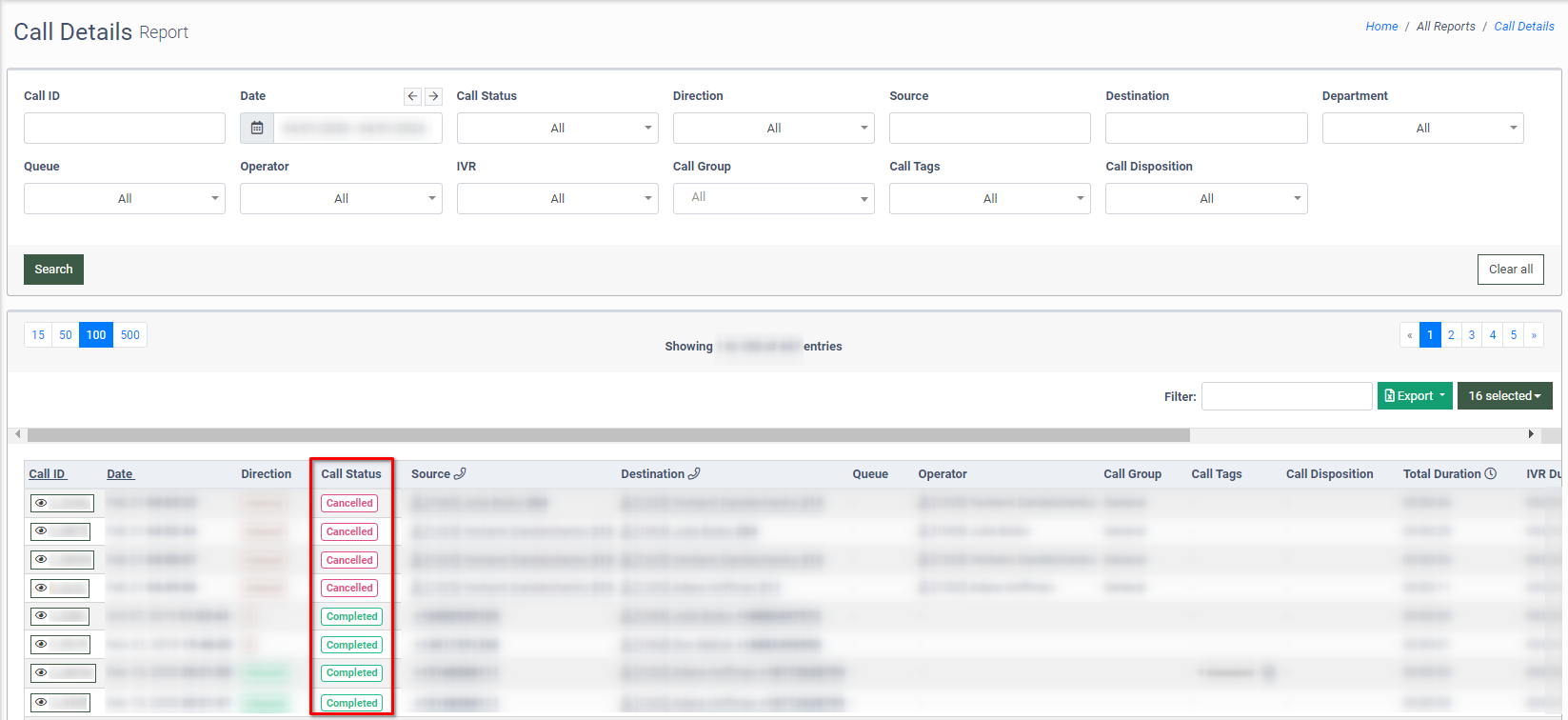 To view the call status in the processed calls list, go to the All Reports > Call Details section. The current status of the call will be displayed in the “Call Status” column.