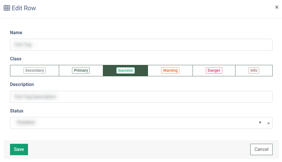 - Class: Select the corresponding class for the custom call tag (Secondary, Primary, Success, Warning, Danger, Info).