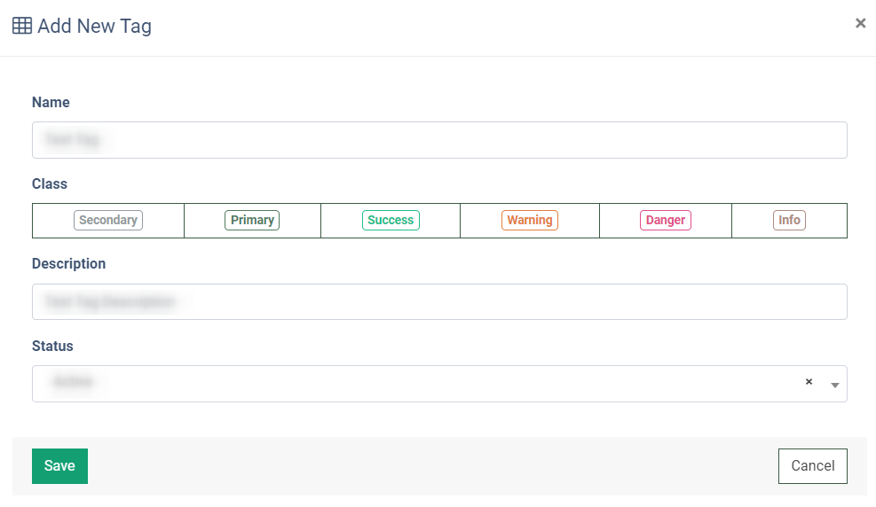 - Class: The class of the call tag (Secondary, Primary, Success, Warning, Danger, Info).