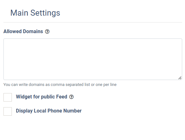 • Allowed Domains: List the domains that will contain the widget. You can fill in domains separated by a comma or one per line. (Example: yourdomain.com)