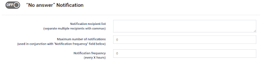 The “No Answer” Notifications block allows you to configure the settings and list of emails to receive no answer notifications.