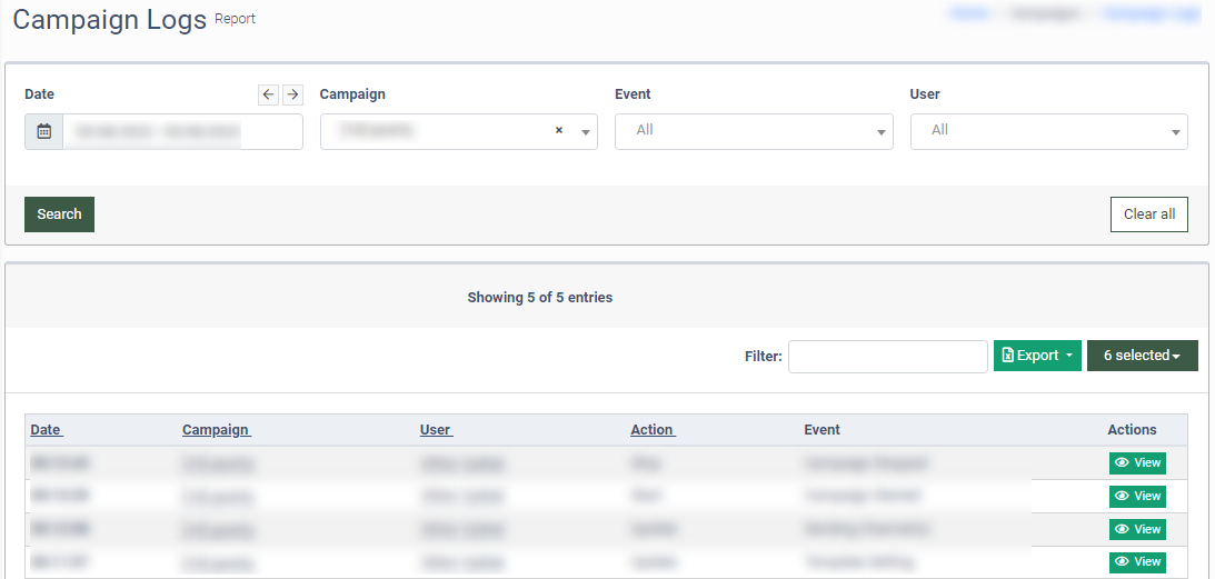 The Campaign Logs Report allows you to view the Email and SMS campaign status changes and updates.