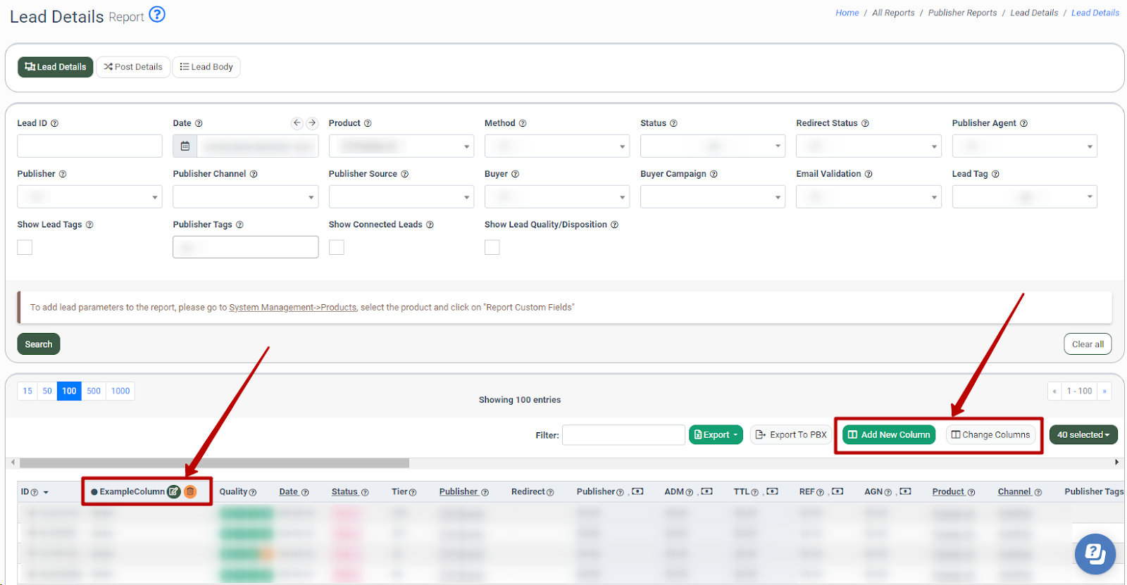 To create a custom column, go to the report section where you would like to create it, click the “Add New Column” button, and fill in the following fields in the pop-up window: