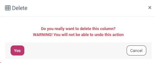 To delete the custom column, click the “Delete” button (bin icon) next to the column’s name and confirm the action in the “Delete Column” pop-up window.