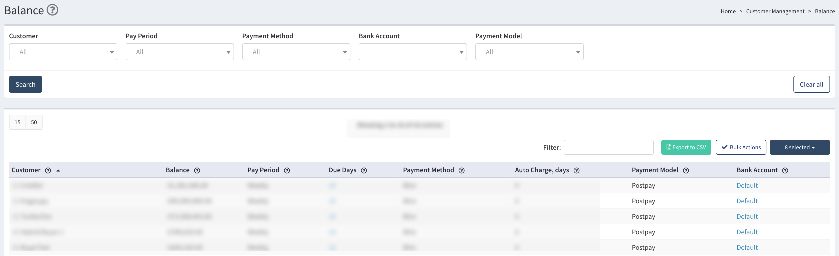 To view the list, go to the Customer Management > Balance section.