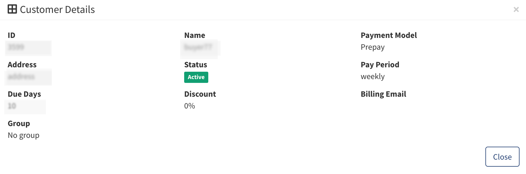 - Group: The Customer’s group.