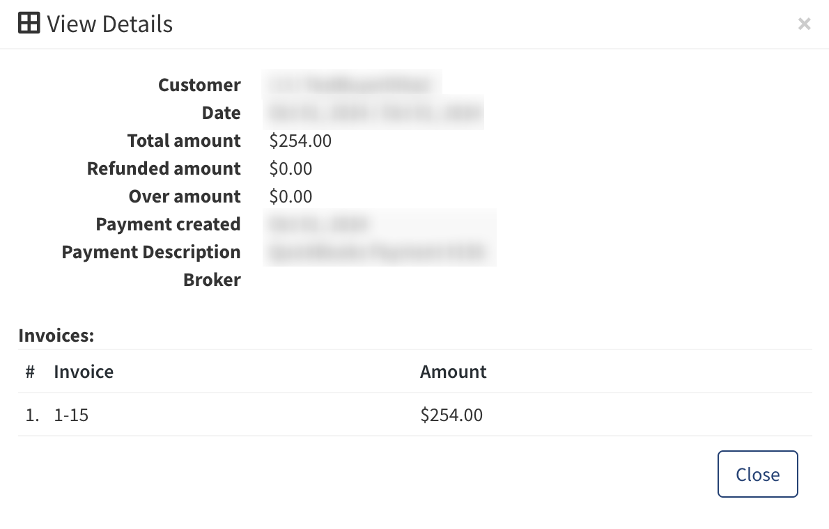 - Customer: The name of the Customer that made the payment.