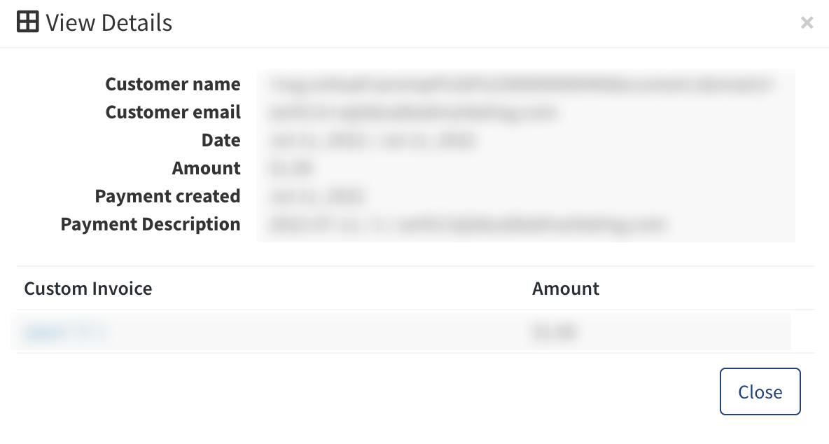 To view the detailed information about the specific custom payment, click the “View Details” button in the “Actions” column.