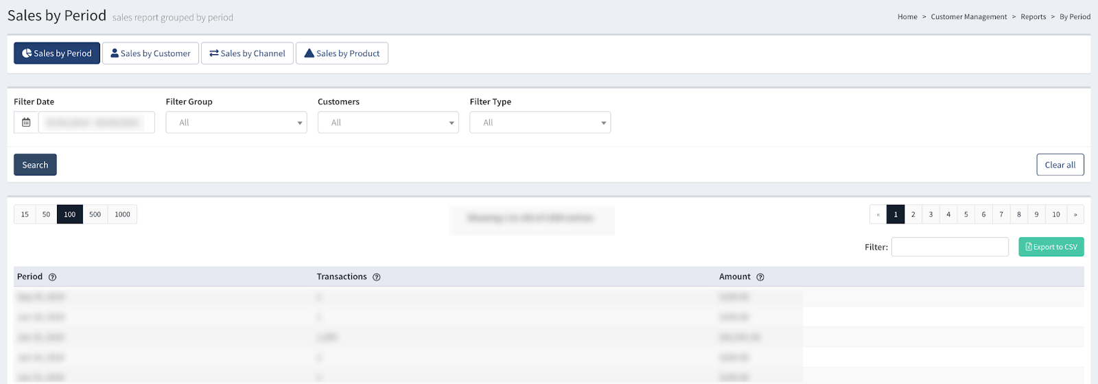 The “Sales by Period” tab allows you to view all the Customers' sales grouped by each date of the selected time range.