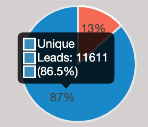 When you hover over a chart with the cursor, the normal data corresponding to lead uniqueness is highlighted in blue, while duplicate data is highlighted in red.
