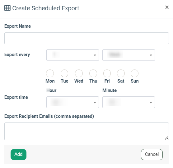 - Export time: Select the time to start the export.
